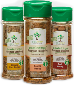 paw pairing are an easy way to reduce boredom at mealtime. Each variety is a perfect "pairing" for your pet's food - ANY food! Your pets will enjoy "making" their meals! Just sprinkle some on and watch them run to the bowl. It's that easy!