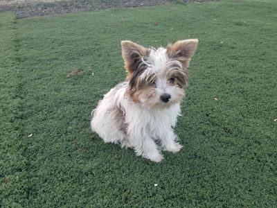 A Parti Yorkie is the result of mating two purebred Yorkshire Terriers who carry the Parti Gene.